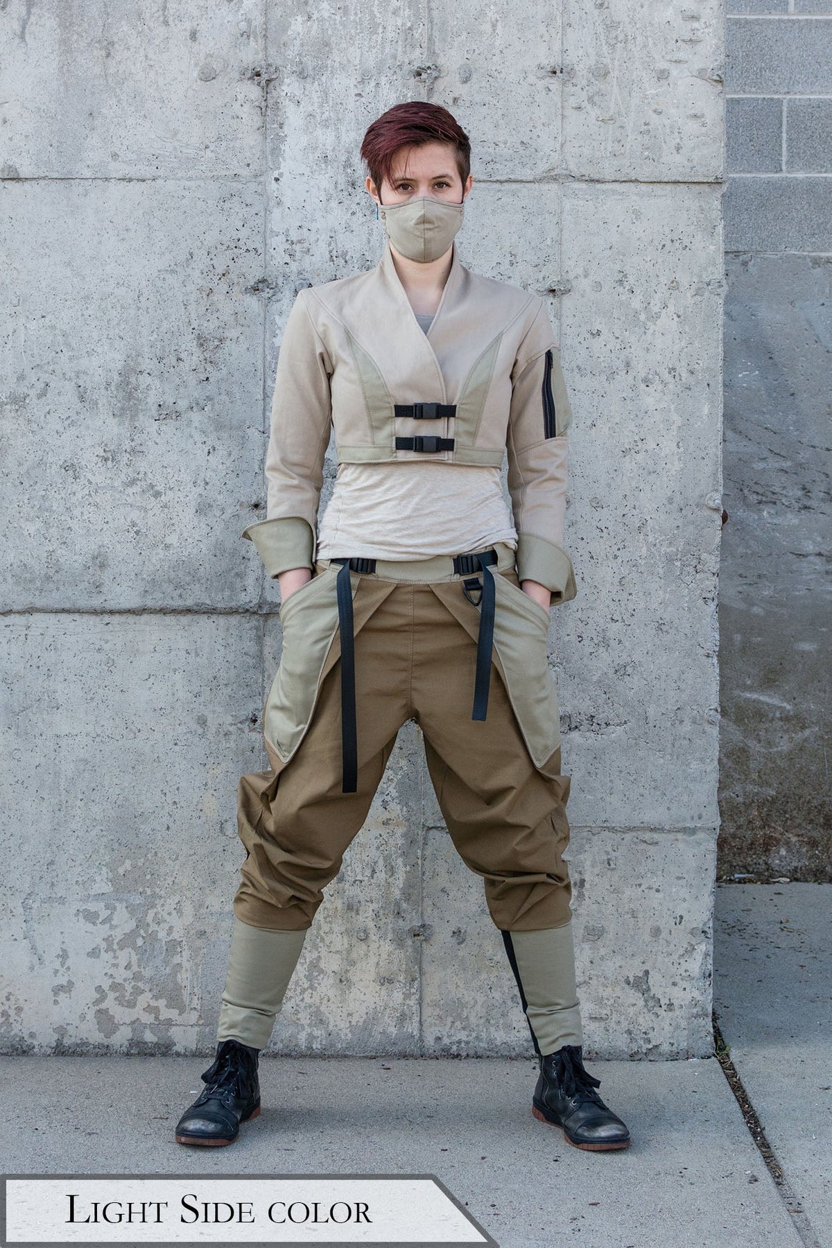 Jet is 5'4" and wearing the Light Side Chuunin Crop in size 33W.