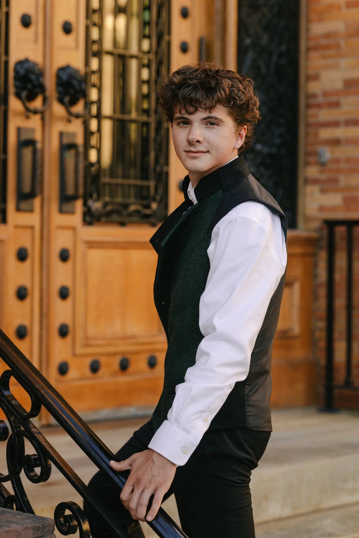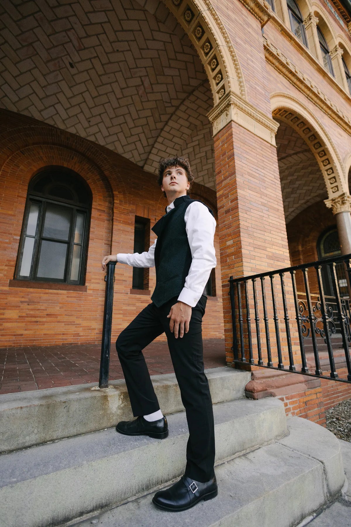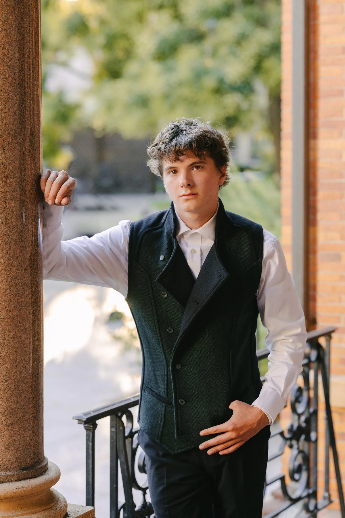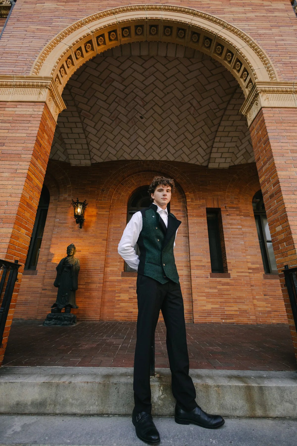 Nate is 5'8" and wearing the Viktor Vest in size 39M.