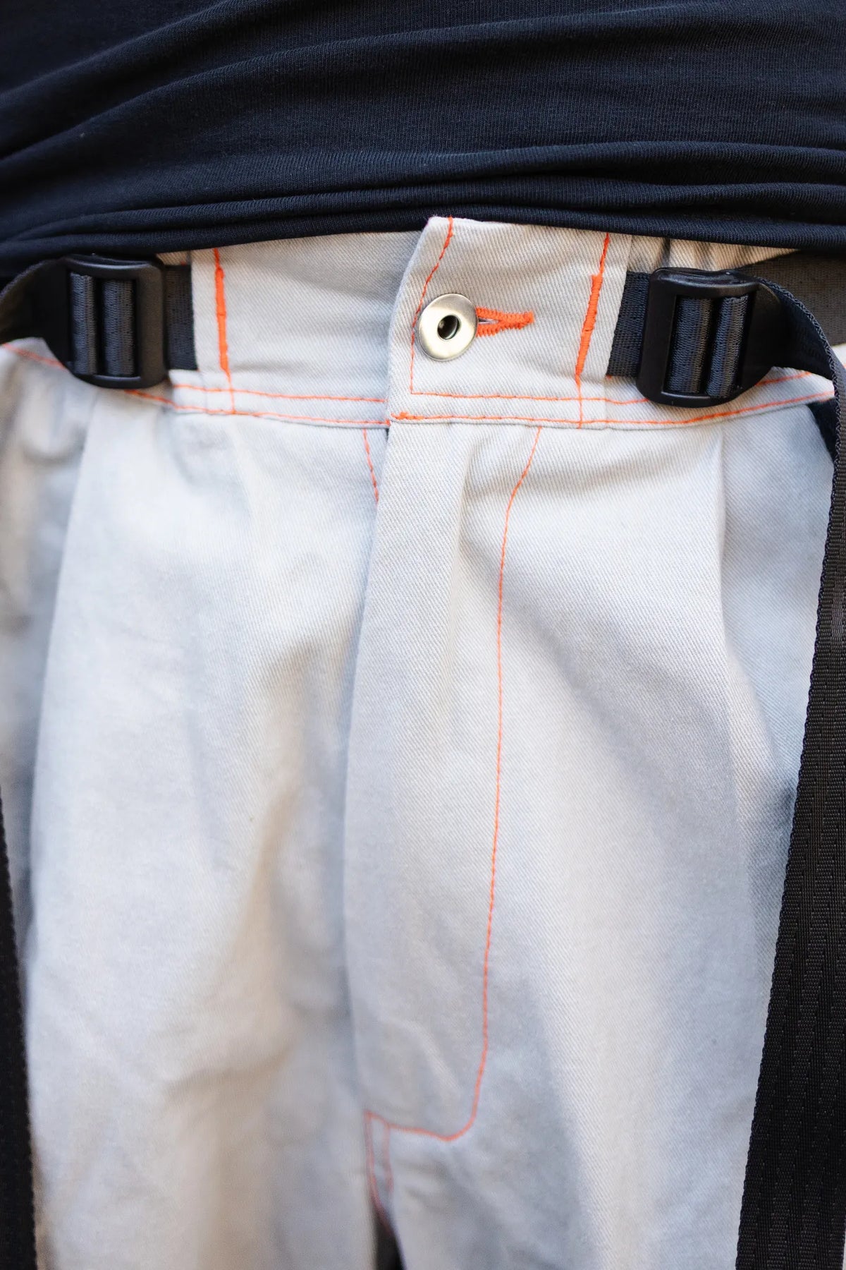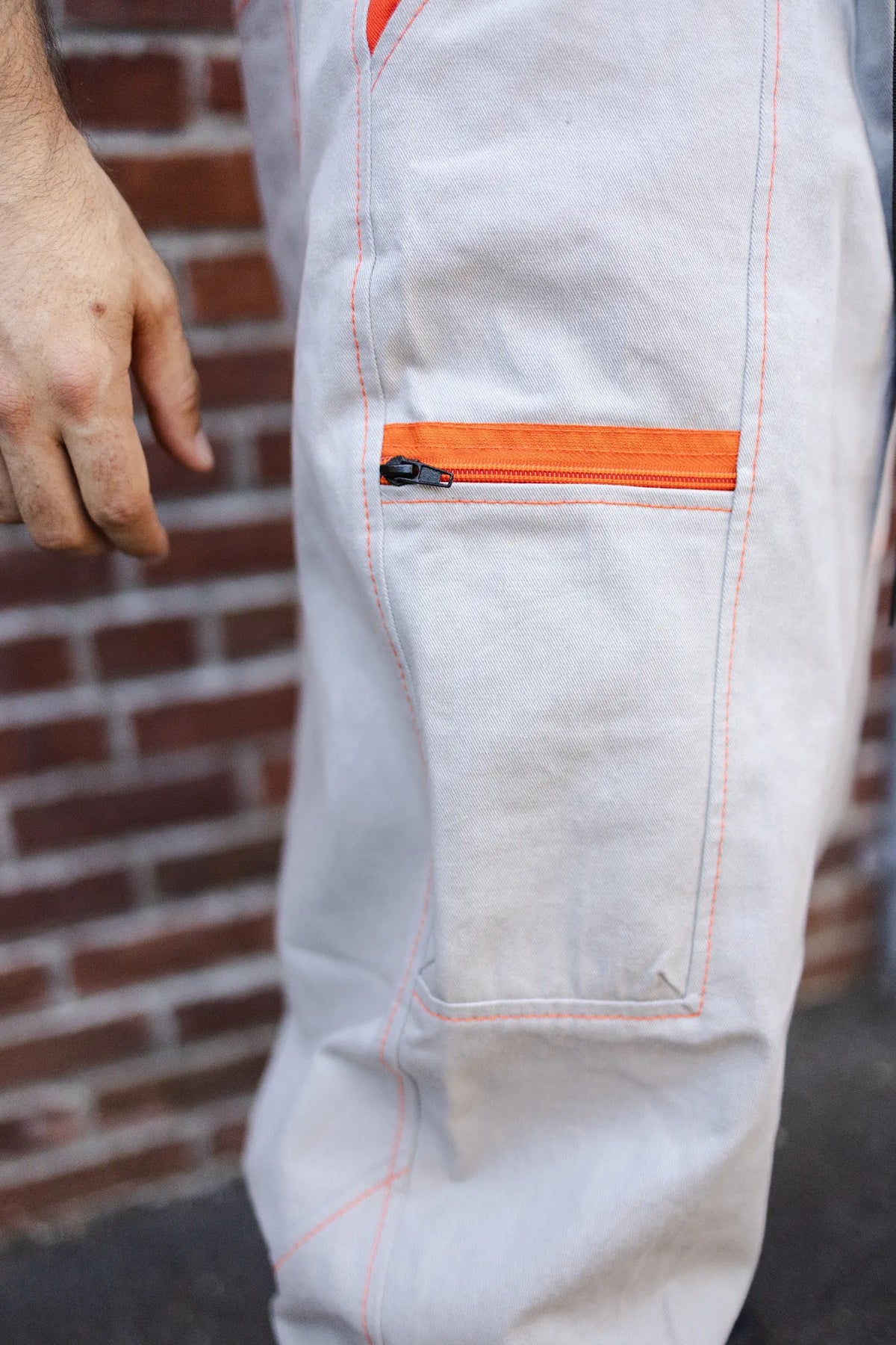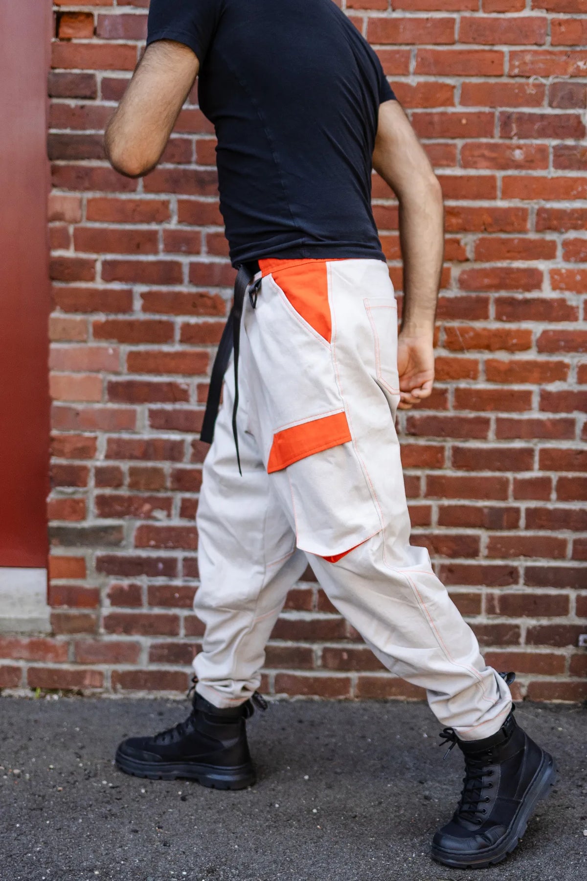 - Lunar Dust - Light gray with orange accents, black belt & hardware, and orange topstitching