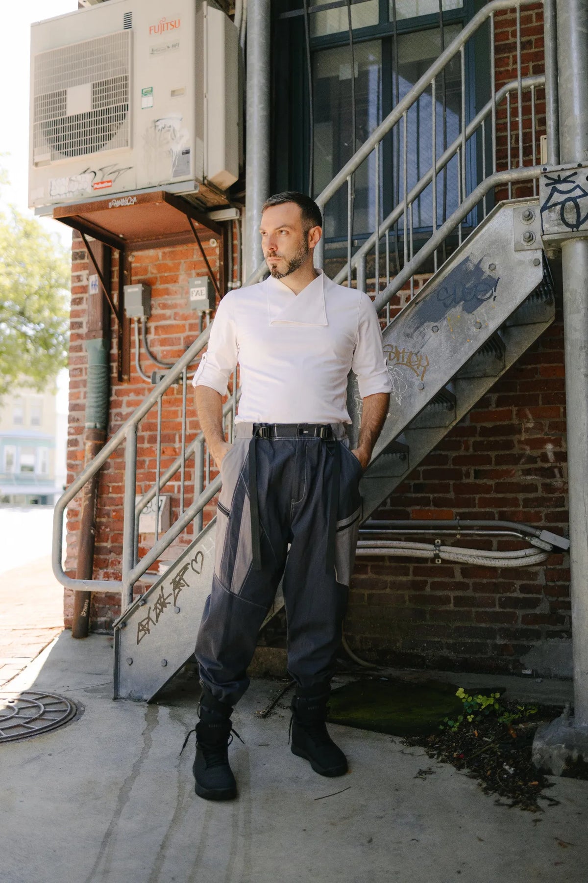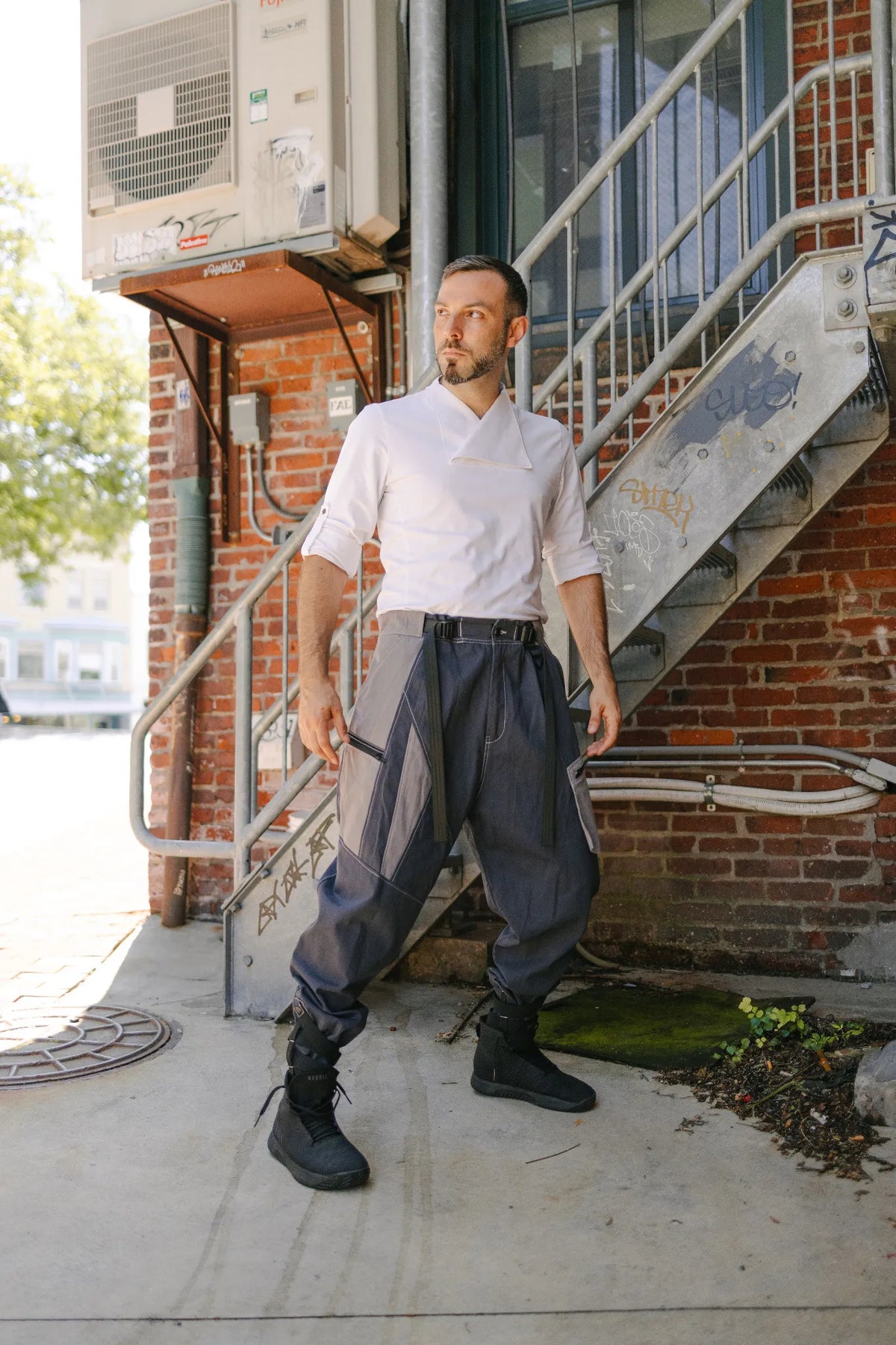 Designed for messengers, parkour artists, and urban adventurers, the Tsukai Pants deliver a street-ready silhouette that’s as functional as it is striking.