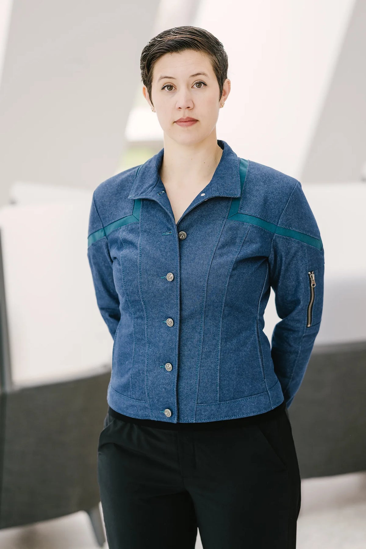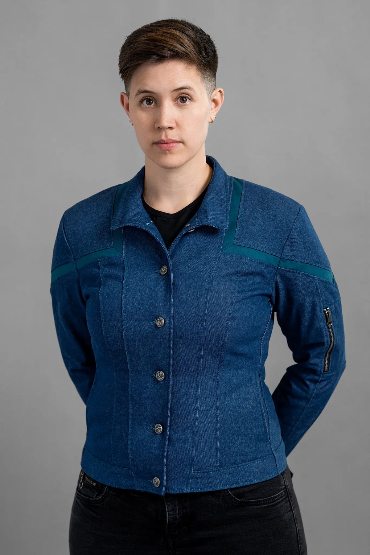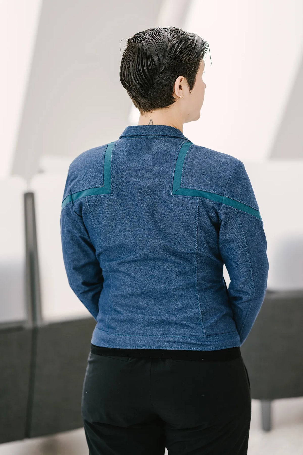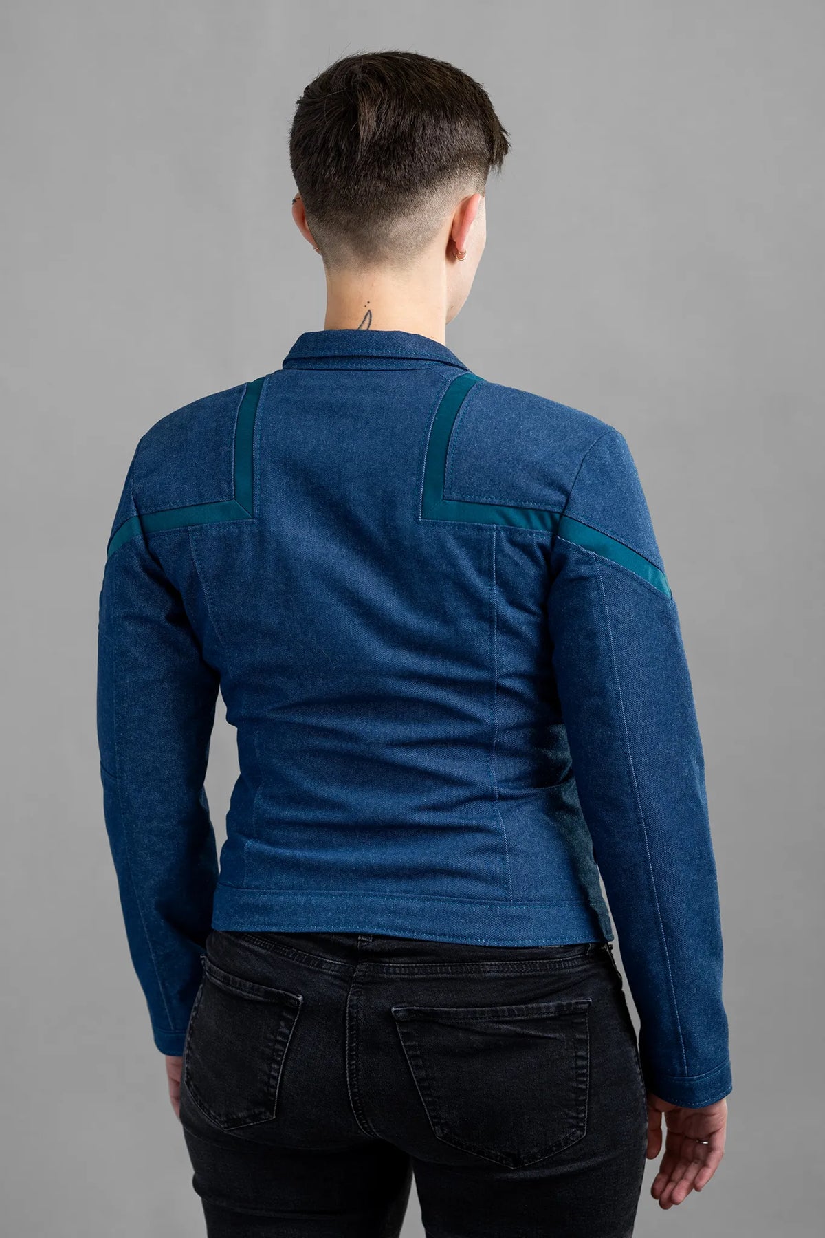 The Starfleet 2151 incorporates design features of a classic denim jacket to evoke the iconic style of the Star Trek: Enterprise crew.