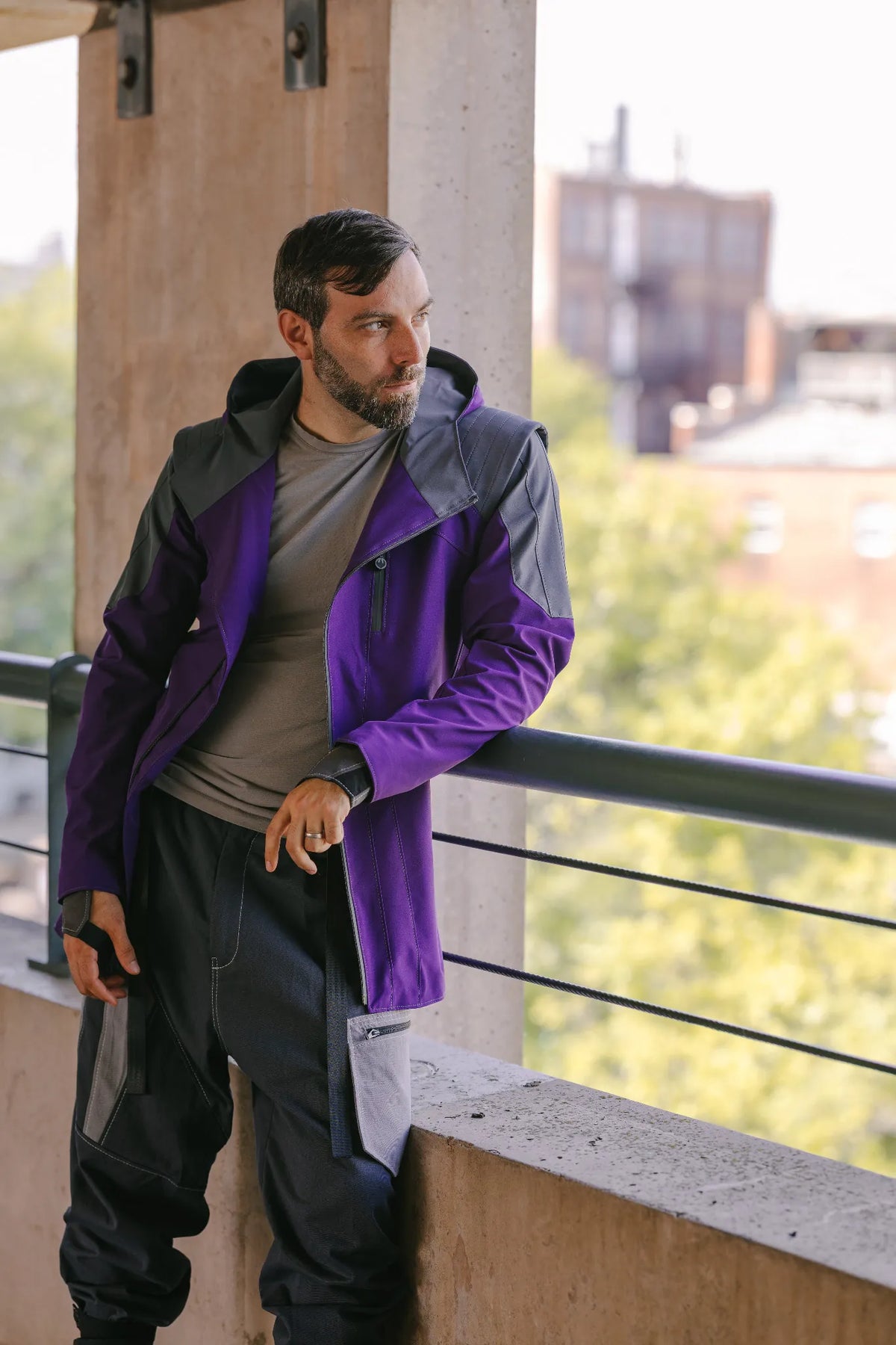 - Oroku Saki - Purple with grey accents and grey liner, grey topstitching, and grey waterproof zippers and custom zipper pull