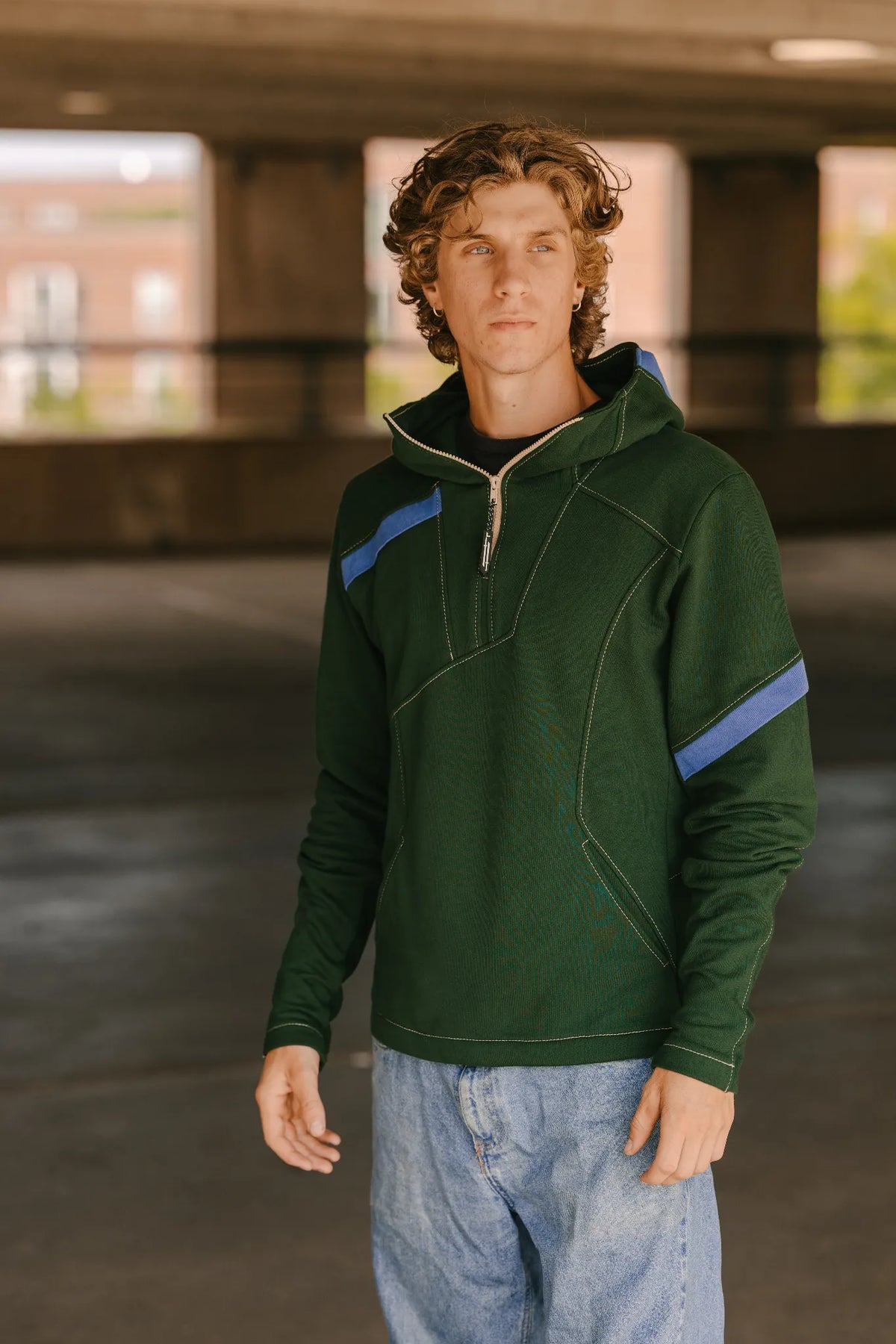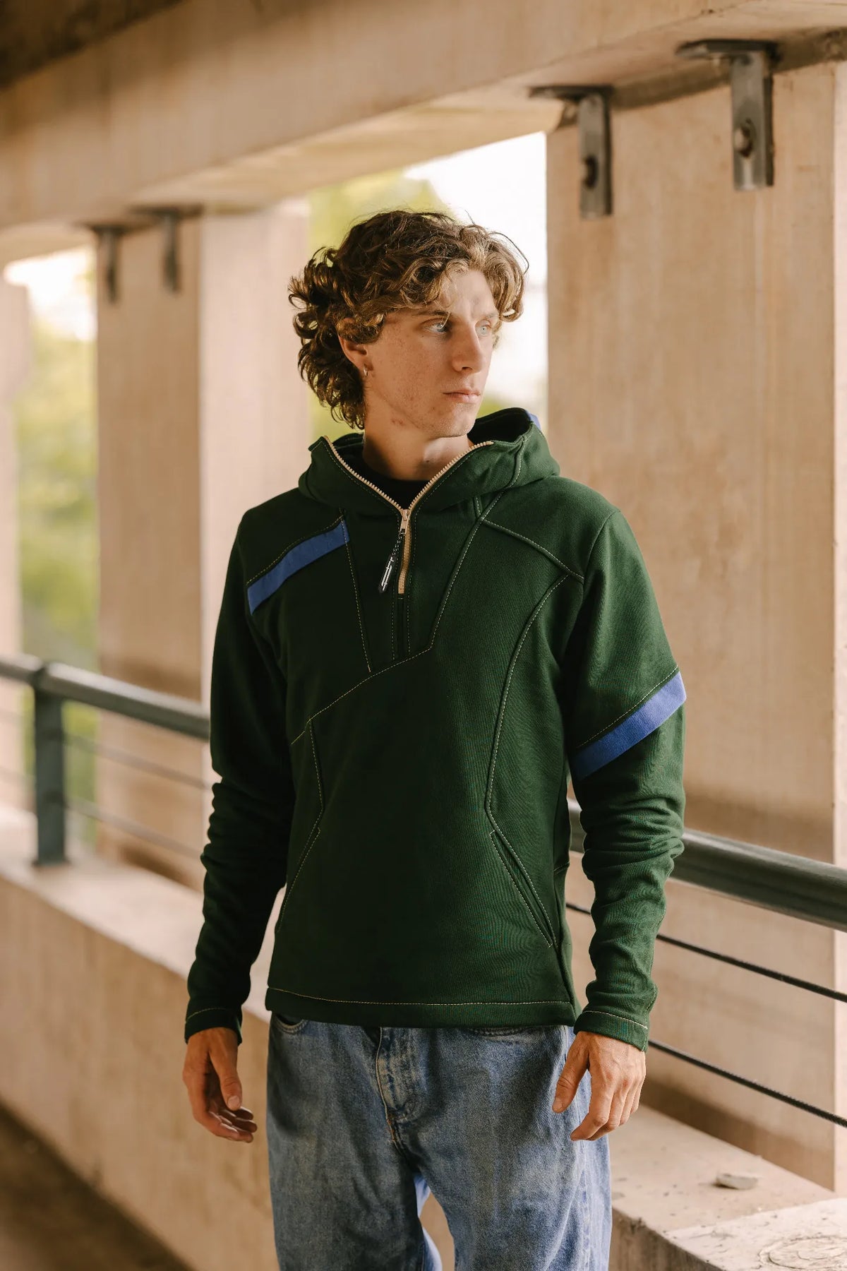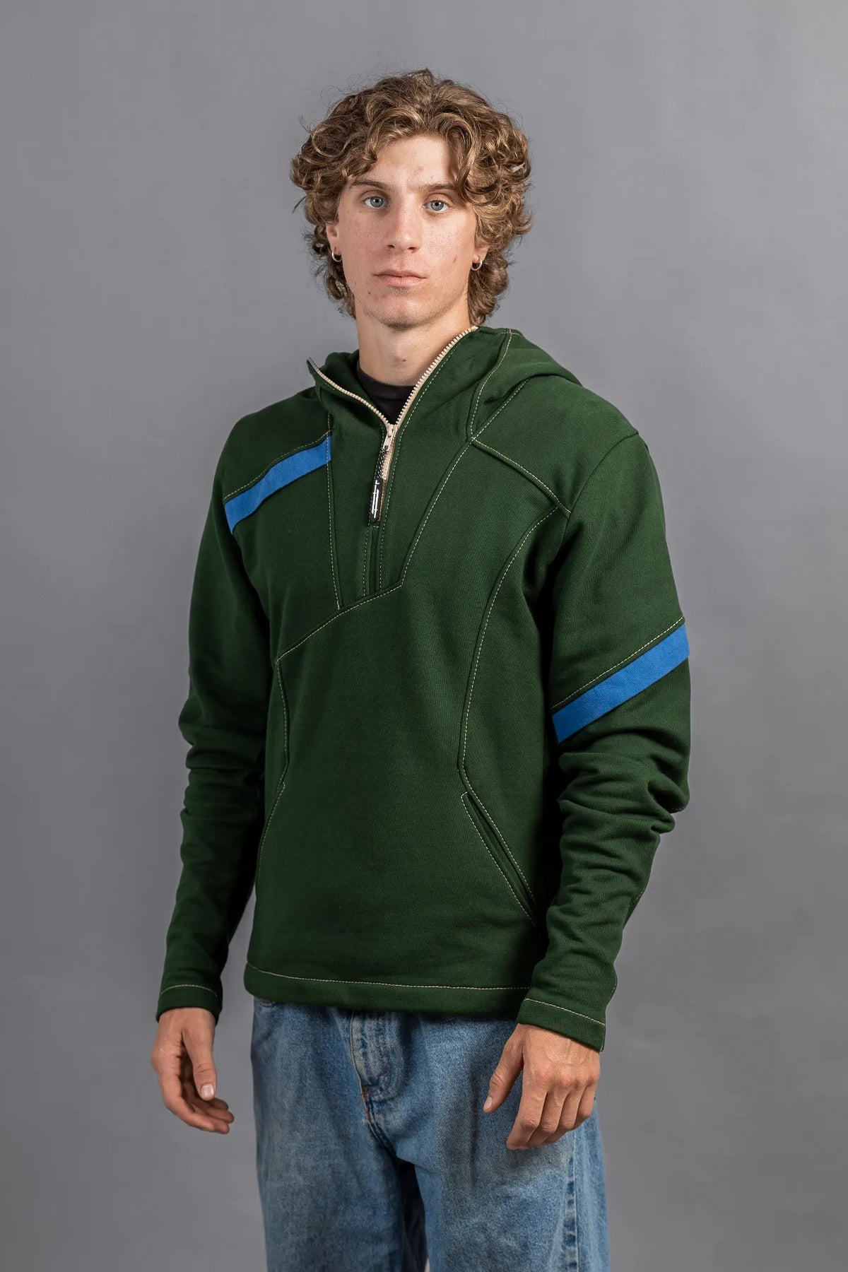 • Leo - Green with blue accents, tan topstitching, and tan zipper with custom zipper pull