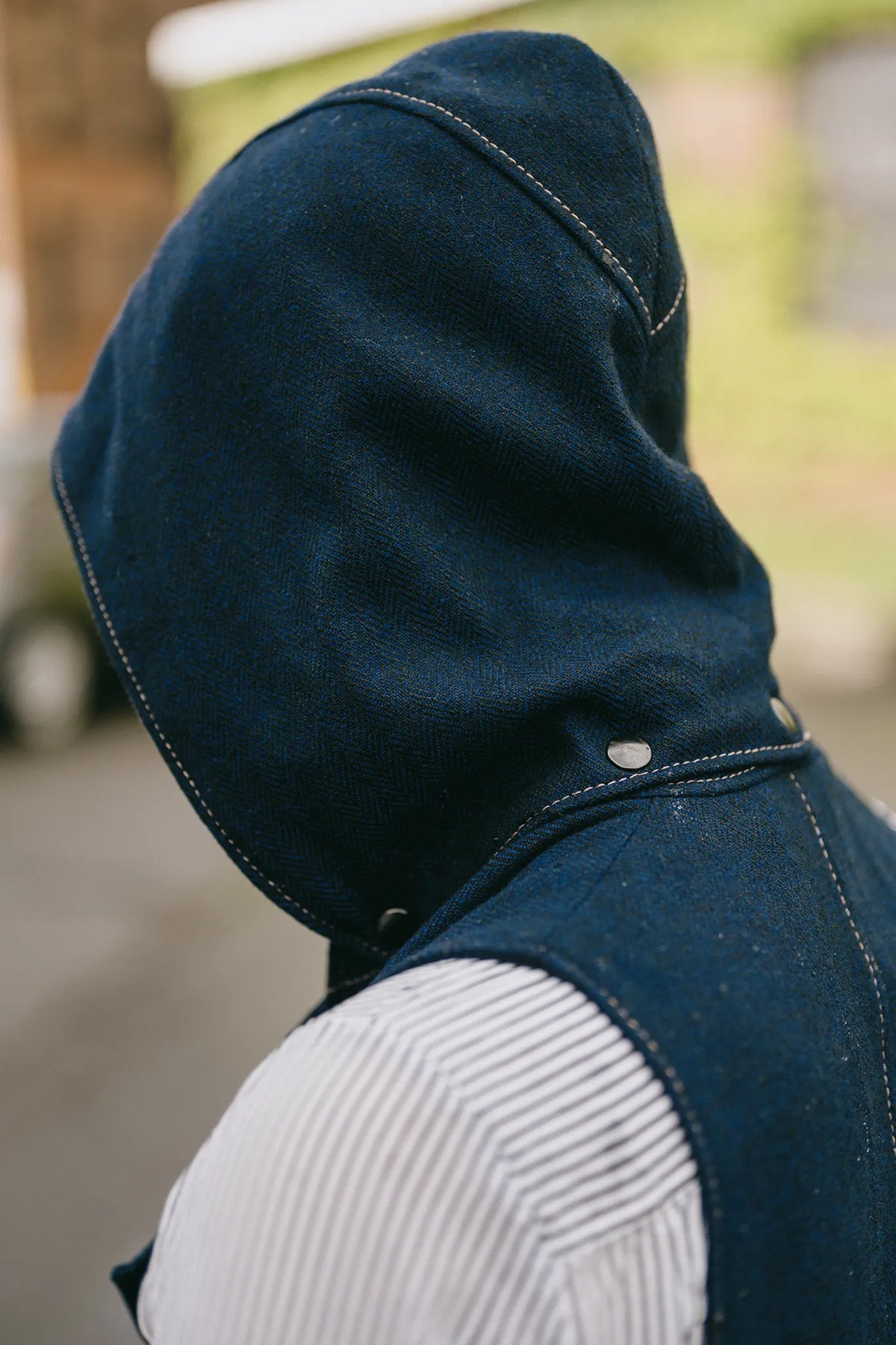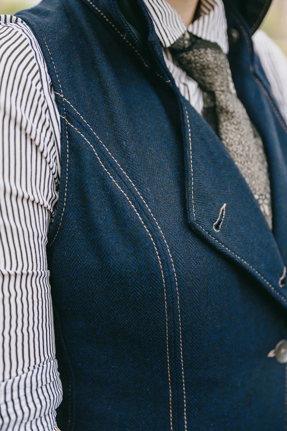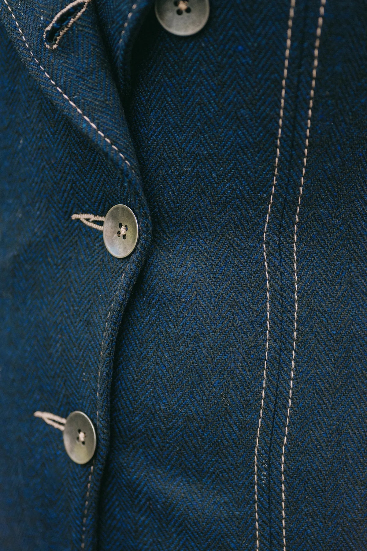 Victorian Disciple - Dark navy herringbone with tan topstitching and gray metal buttons