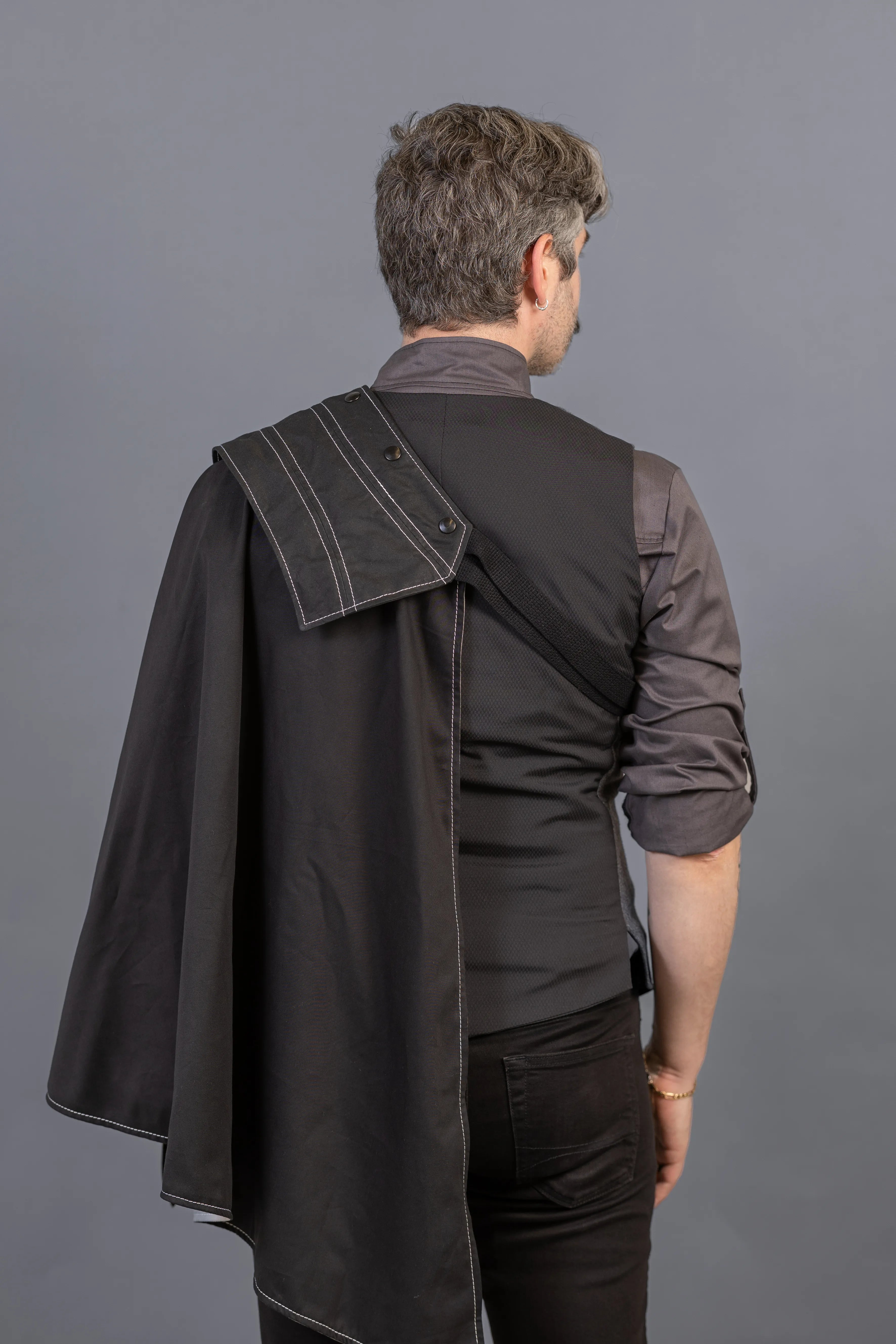 - Wolf Moon - Black waxed canvas pauldron with white thread / Black and light grey cotton twill cape