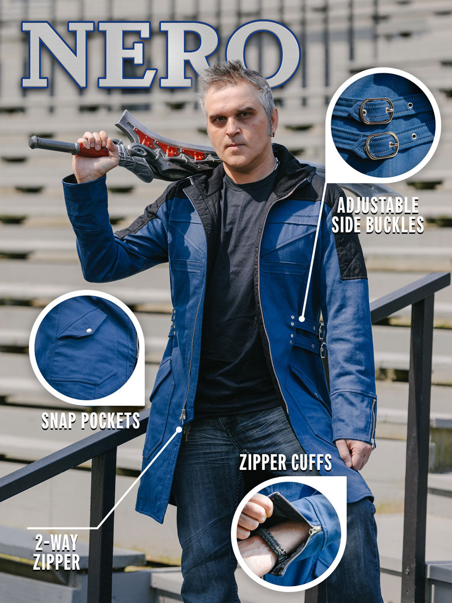 Thrill your flair for the dramatic with luxurious corduroy. In the business of demon hunting, mobility is required. The Nero’s zipper cuffs and a sophisticated body design allow for a wide range of movement.