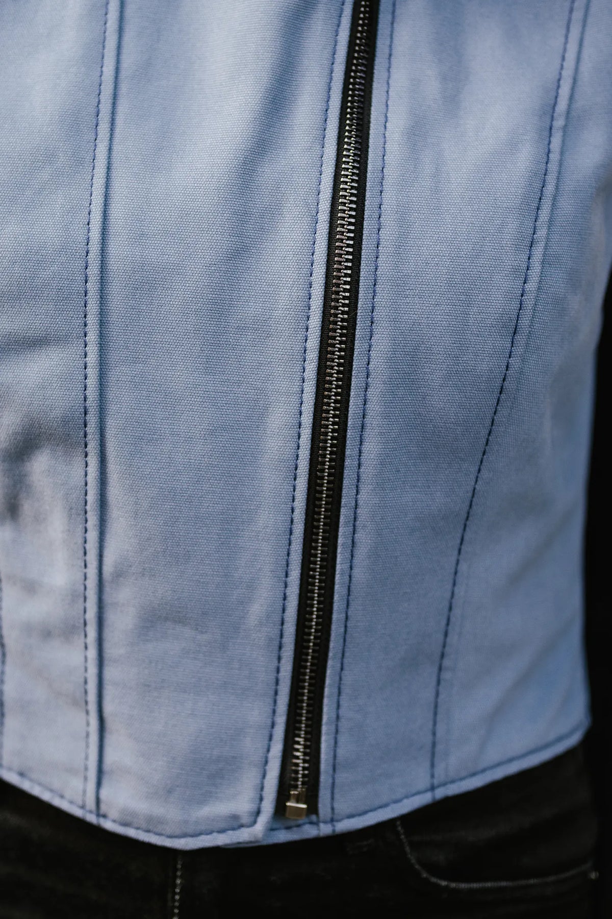 The angled hem and fitted shape were made to compliment movement, whether you're pairing it with combat boots or your favorite vintage skirt.